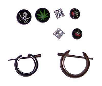 Son una calavera pirata, unas hojas de Marihuana, dos brillantillos y dos aros de coco con espina (se llaman así),